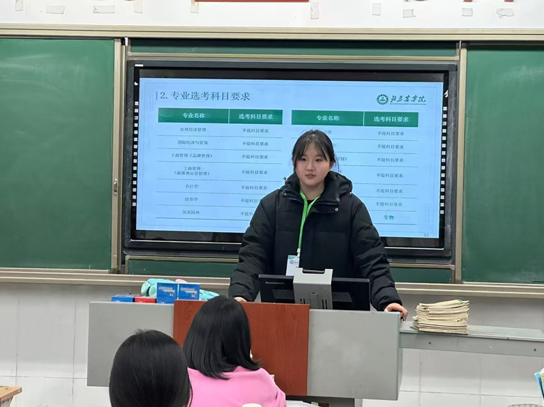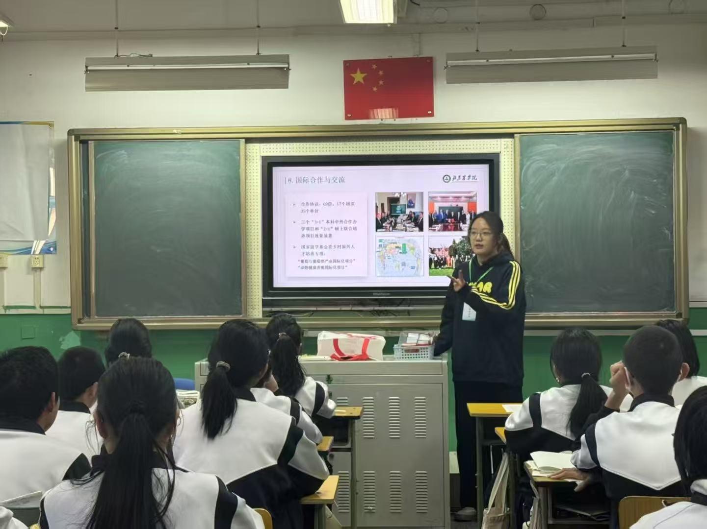 同学们先后走进北京市通州区永乐店中学、首都师范大学附属回龙观育新教育集团沙河校区和北京市平谷区第五中学等。她们向学弟学妹们介绍yl6809永利的基本情况、办学条件、往年录取分数、就业情况等内容。随着PPT展示,校园景色、教学设施和科研平台等内容详尽,她们还结合自己的所学专业做了讲解。