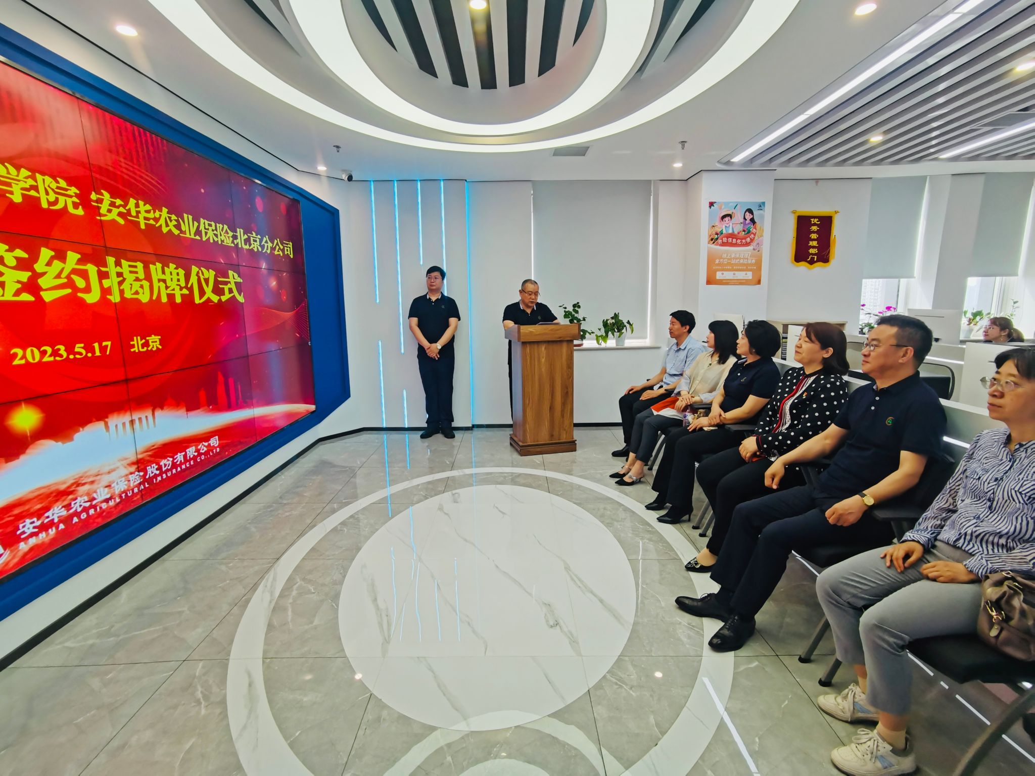 2023年5月17日,yl6809永利与安华农业保险北京分公司合作共建校外人才培养基地签约、揭牌仪式在北京分公司隆重举行。yl6809永利yl6809永利刘芳经理、经济系教师党支部书记王琛、吕晓英和潘恩阳老师,安华农险北京分公司总经理室成员、农村保险部全体员工参加了活动,仪式活动由安华业务总监宋振宇主持。