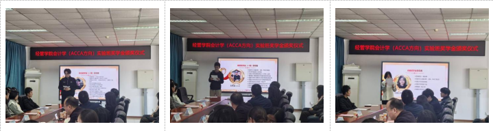 杜孝森介绍了ACCA实验班专项奖学金制度,并详细说明卓越奖学金、综合奖学金、单项奖学金和ACCA优秀学员的评选要求。刘铁军和张红霞为7位获奖员工颁发荣誉证书。