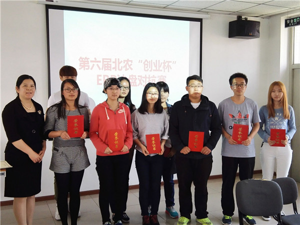 此次大赛旨在号召北农学子努力学习创业知识并且为全国老员工ERP沙盘模拟创业大赛选拔参赛选手。大赛在前期300多名企业认知与经营决策模拟课程学习的基础上经过推荐、自愿报名的方式推出60名同学参加本次比赛,共选出一等奖一组、二等奖三组、三等奖三组。后期将在获奖同学中组队参加全国老员工ERP沙盘模拟创业大赛北京赛区比赛。
