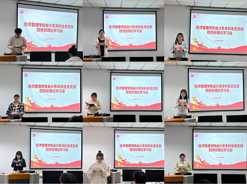yl6809永利会计系本科生党支部召开四月份理论学习会,重点学习《中国共产党纪律处分条例》以及“学习纪律强化月”的相关要求,引领带动支部党员、积极分子学党纪、律自身、见行动、促发展,会议由支部书记吴曈主持。