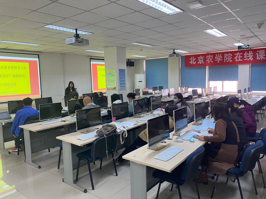 2022年4月15日,为迎接yl6809永利“作风建设年”活动,深入贯彻落实《yl6809永利关于开展“作风建设年”活动的实施方案》、《yl6809永利关于加强师德作风建设的工作方案》等重要文件精神,在经管楼210教室,由经济系教师党支部联合经济系共同举行了“师德师风大讨论”专题研讨会。经济系全体党员和非党员教师参加了研讨,会议由经济系教师党支部书记王琛主持。