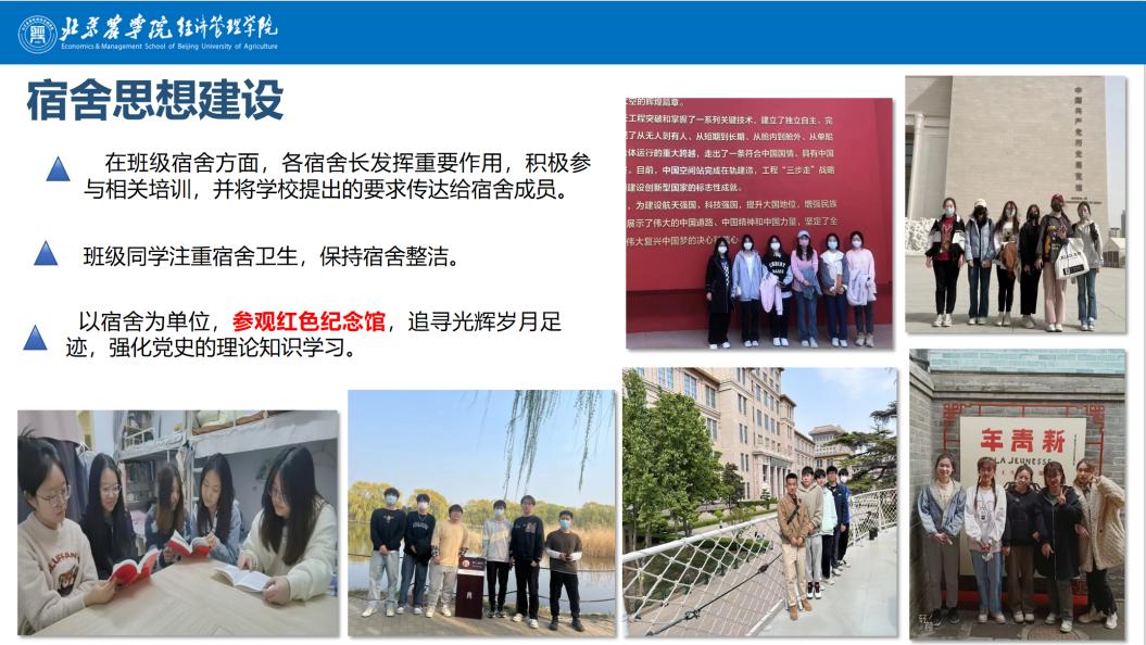 宿舍是员工在校的“家”,也是思想建设的重要阵地。王鸿老师坚持每周走访员工宿舍,关心他们的生活,强调宿舍卫生,并在轻松的闲聊中进行正向的引导。他鼓励员工以宿舍为单位走访红色教育基地,强化党史学习。这种润物细无声的关怀取得了显著成效:22工商1班累计荣获3次“文明宿舍”和“优秀样板间”;22工商2班则斩获了“校级样板宿舍”及三次“校级文明宿舍”的荣誉称号,宿舍成为了同学们共同成长的温暖港湾。
